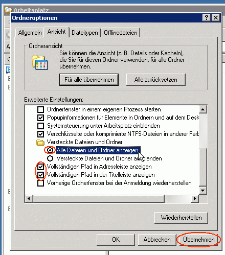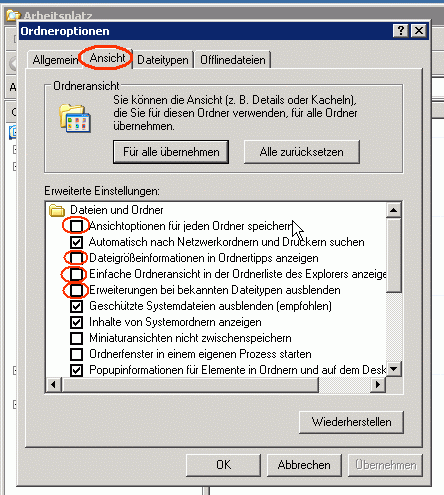 Einstellungen für den WindowsExplorer vornehmen