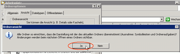 ... die daraufhin erscheinende Nachfrage Alle Ordner so einrichten, dass ... mit Ja bestätigen ...