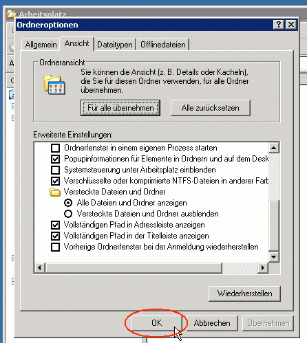 ... erst jetzt darf auf OK geklickt werden! Damit ist diese Einstellung endlich erledigt. Nun könnte man sich mit dem Windows-Explorer gleich mal den sogenannten Klassenordner anschauen. |